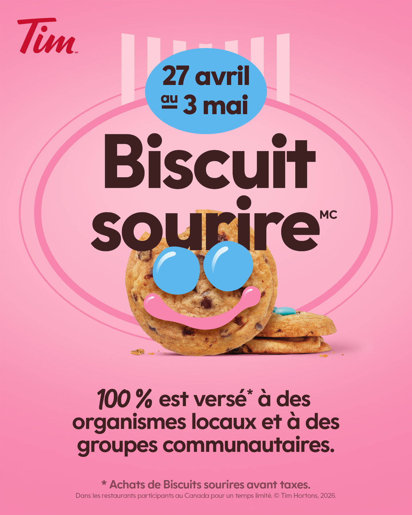 Les invités qui achètent un biscuit sourire fraîchement cuit feront un don à ces excellentes causes, car chaque dollar est versé en don